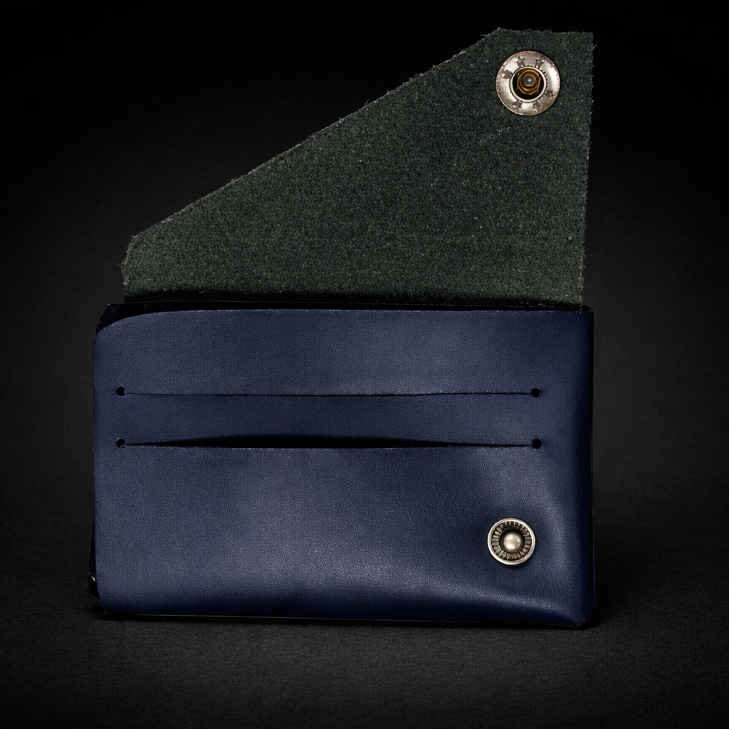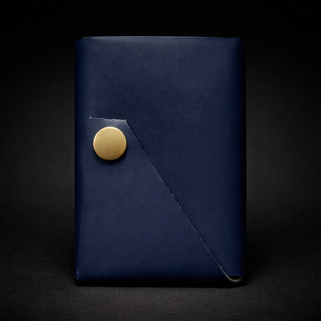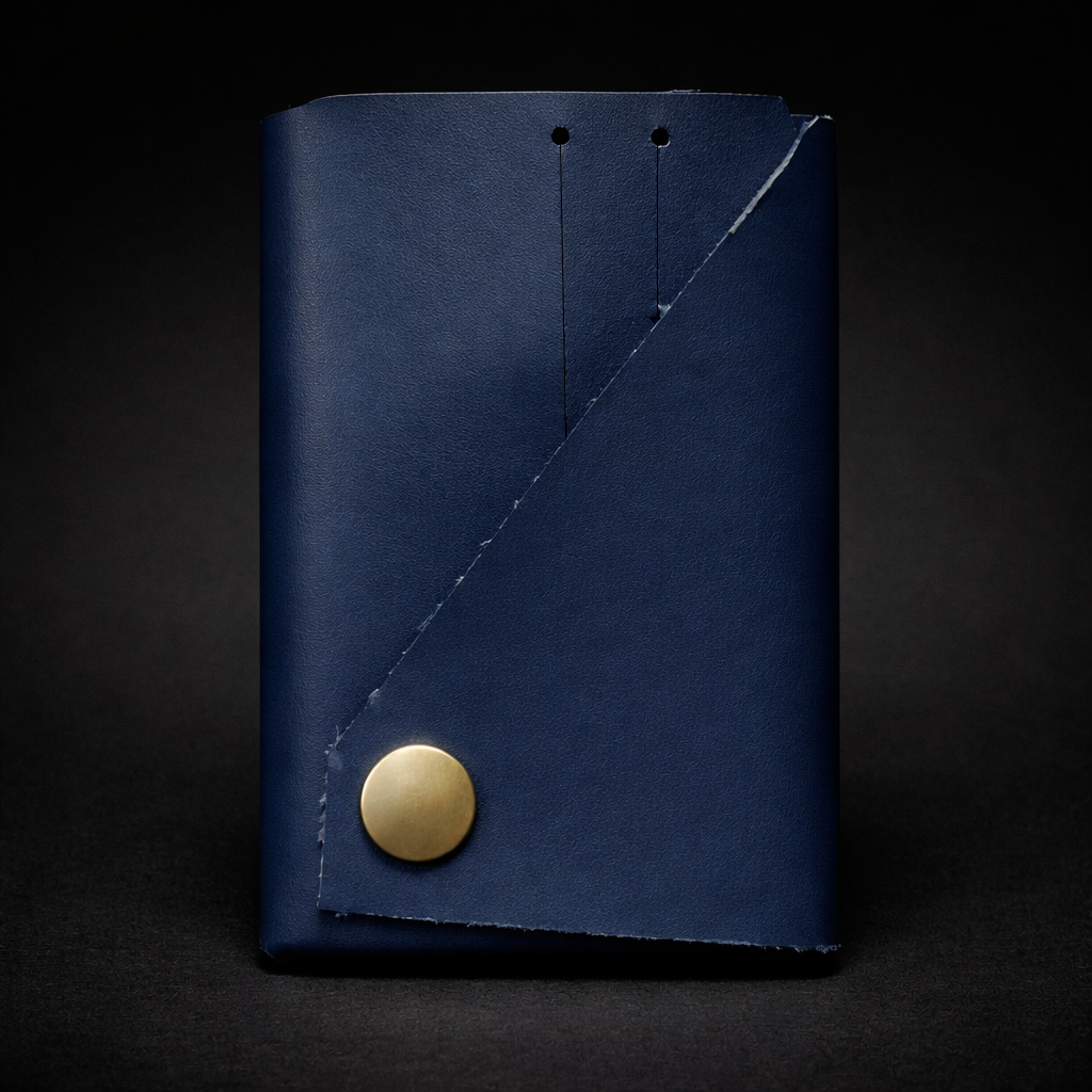 The diagonal fold is not decoration. It is the spine of the design. It distributes pressure, secures contents, and gives the wallet its quiet strength. Every line exists for a reason. Every limitation is deliberate.